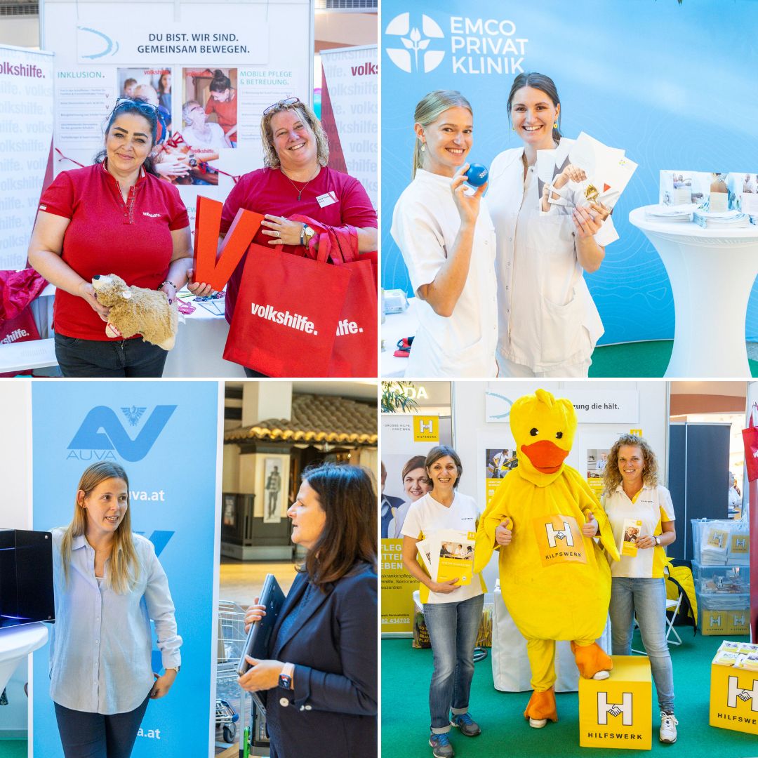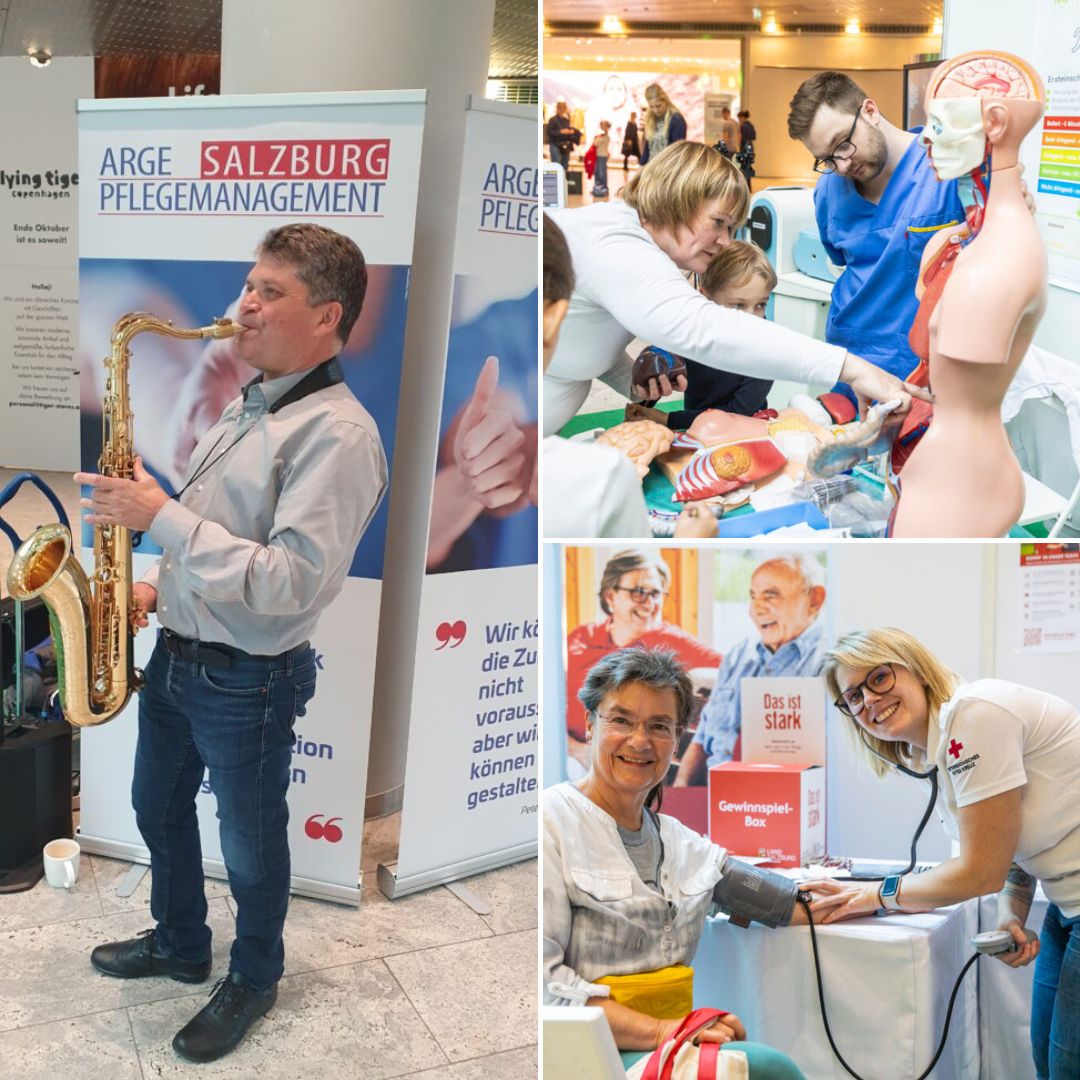 Am 21. Oktober 2023 verwandelte sich der EUROPARK Salzburg in eine „Pflegestraße“. Mehr als 20 Institutionen – von den Salzburger Landeskliniken bis zur FH Salzburg – stellten unter dem Motto „Pflege wirkt – Prinzip Nachhaltigkeit im Pflegeberuf“ moderne Berufsbilder, VR-Simulationen und Beratungen zur Gesundheits- und Krankenpflege vor. Workshops, Gewinnspiele und persönliche Gespräche boten Einblicke in Karrierechancen und zogen zahlreiche Besucher*innen an.