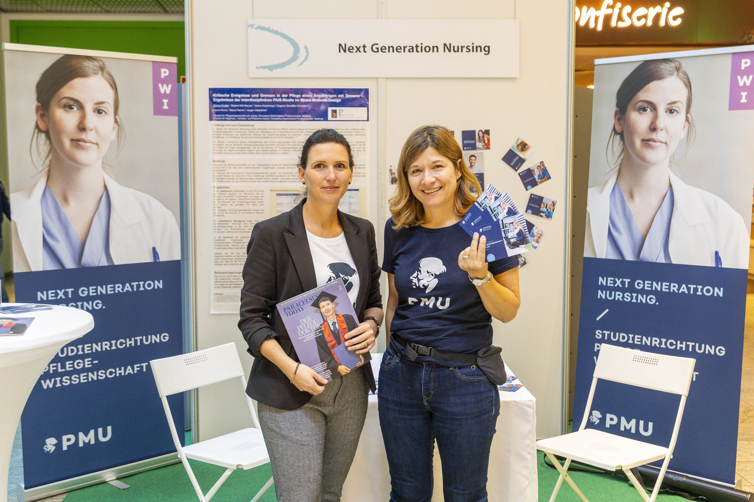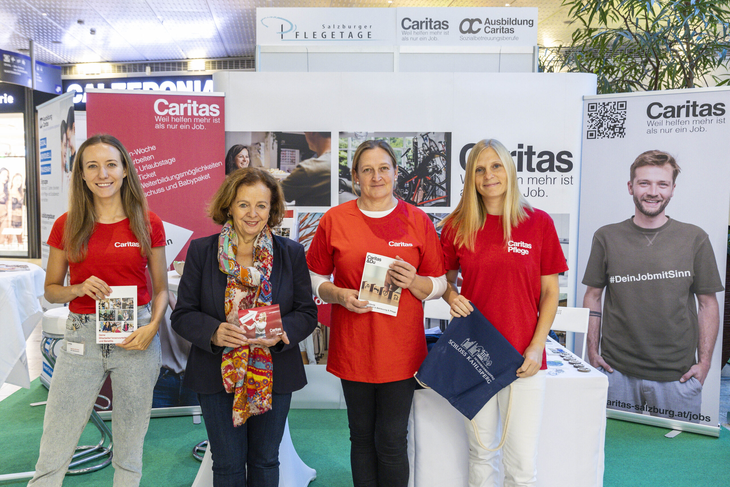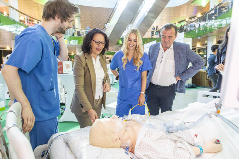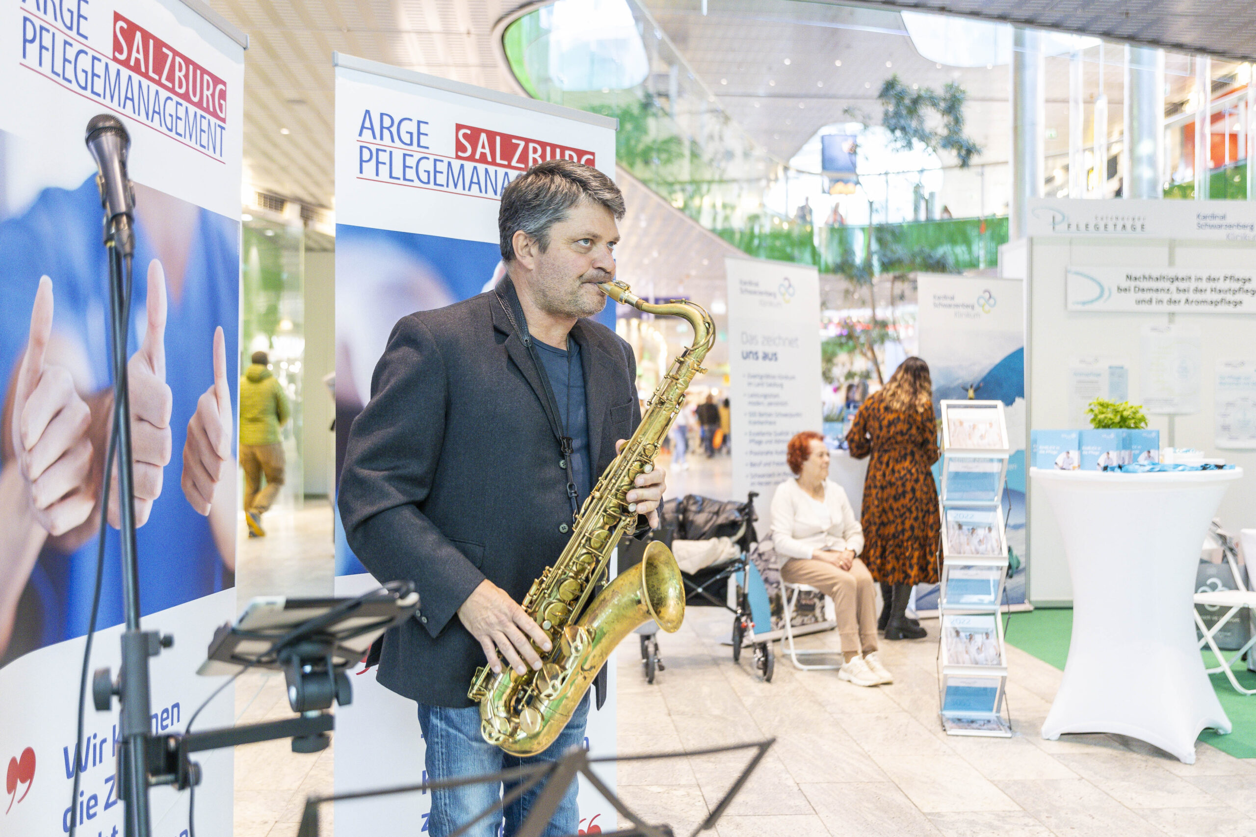 Unter dem Leitmotiv „Pflege wirkt – Prinzip Nachhaltigkeit im Pflegeberuf“ nutzten über zwanzig Akteurinnen aus Akut-, Langzeit- und Ausbildungseinrichtungen die Gelegenheit, sich und ihre Leistungen vorzustellen. Die Salzburger Landeskliniken (SALK) waren an sechs Ständen präsent und zeigten neben onkologischer Pflege auch ihre Gesundheits- und Krankenpflegeschule sowie Möglichkeiten der Intensivbetreuung. Der Studiengang Gesundheits- und Krankenpflege der FH Salzburg lud Besucherinnen zu einer immersiven VR-Simulation realer Pflegesituationen ein und machte damit moderne Ausbildungswege greifbar.