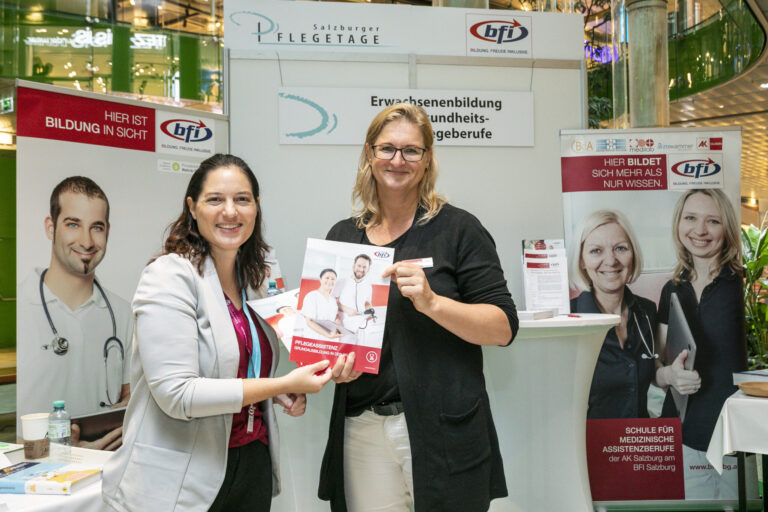 Ergänzt wurde das Programm durch praktische Demonstrationen wie Wund- und Vitalzeichen­pflege, kleine Geschicklichkeits­spiele sowie Gewinn­aktionen, die das Interesse hoch hielten. Das niederschwellige Setting direkt im größten Einkaufszentrum des Landes erreichte damit Zielgruppen, die klassische Berufs­messen kaum besuchen – von Jugendlichen beim Shopping bis zu pflegenden Angehörigen, die spontan Rat suchten. Organisiert im Rahmen der Salzburger Pflegetage und unterstützt von Initiativen wie „Das ist stark!“, setzte die Veranstaltung ein deutliches Zeichen: Pflege ist vielfältig, sinn­stiftend und bietet sichere Karrierewege.